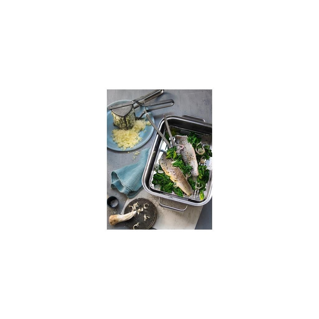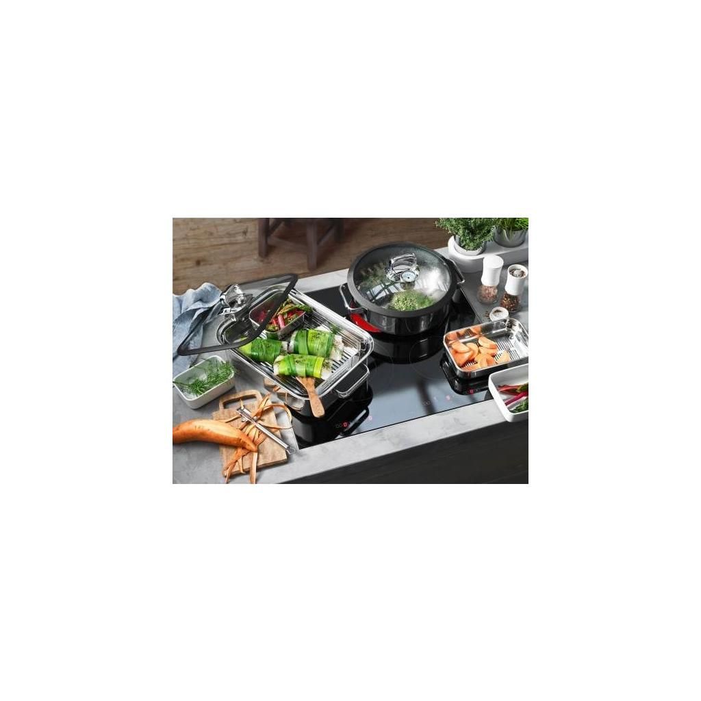 Με το ταψί ψησίματος WMF Vitalis, μπορείτε να ατμοποιείτε απαλά το φαγητό σας. Ο ατμός θεωρείται η πιο υγιεινή μέθοδος μαγειρέματος παγκοσμίως. Η αρχή είναι απλή. Κατά τη διάρκεια αυτής της διαδικασίας, η τροφή δεν βρίσκεται στο νερό και συνεπώς δεν αποβάλλει τις ουσίες που περιέχει στο νερό. Αυτό τους επιτρέπει να διατηρούν πολύτιμες βιταμίνες και μέταλλα. Ο ατμός είναι κατάλληλος για την προετοιμασία όλων των πιάτων που δεν χρειάζεται να είναι τραβηγμένα και τραγανά. Τα λαχανικά παραμένουν τρυφερά και σφιχτά, τα πουλερικά ζουμερά, τα ψάρια δεν διαλύονται. Τίποτα δεν θα στεγνώσει ή θα καεί στον ατμό. Τα τρόφιμα διατηρούν την έντονη, ιδιαίτερη γεύση τους, οπότε μπορείτε να μειώσετε σημαντικά το αλάτισμα. Η άριστη αγωγή θερμότητας μέσω του ατμού διασφαλίζει ότι τα τρόφιμα μαγειρεύονται ομοιόμορφα στο εσωτερικό. Για αυτή τη μέθοδο μαγειρέματος, η WMF έχει αναπτύξει το ιδανικό σύστημα ταψιών ψησίματος Vitalis Aroma.