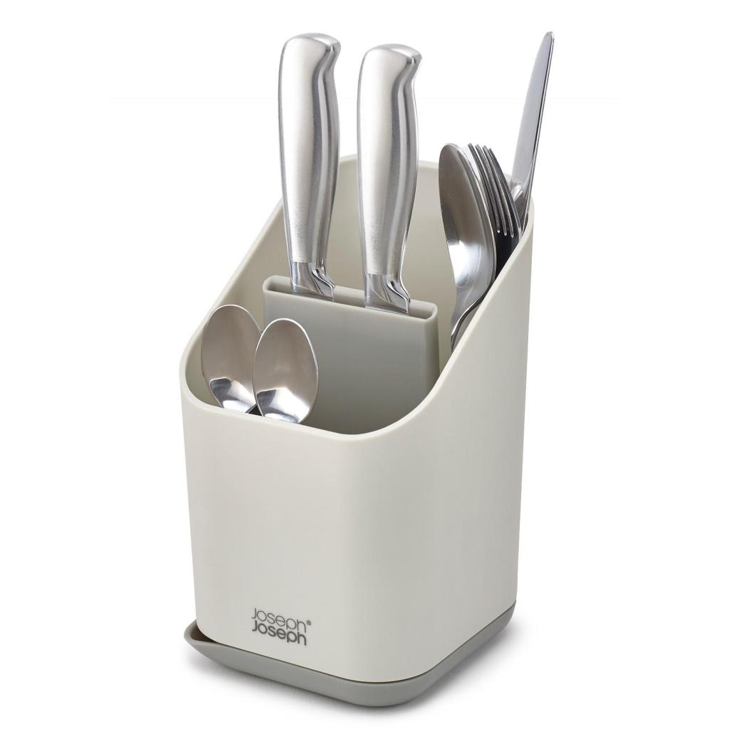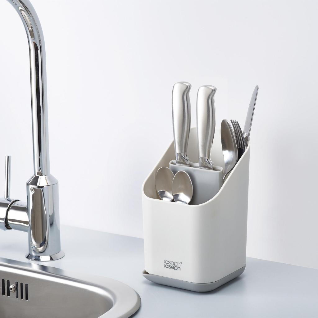 - Η Θήκη στραγγίσματος μαχαιροπίρουνων Joseph Joseph DUO θα κρατήσει τα μαχαιροπίρουνα τακτοποιημένα δίπλα στον νεροχύτη μετά το πλύσιμο και θα τα αφήσει να στεγνώσουν γρήγορα.