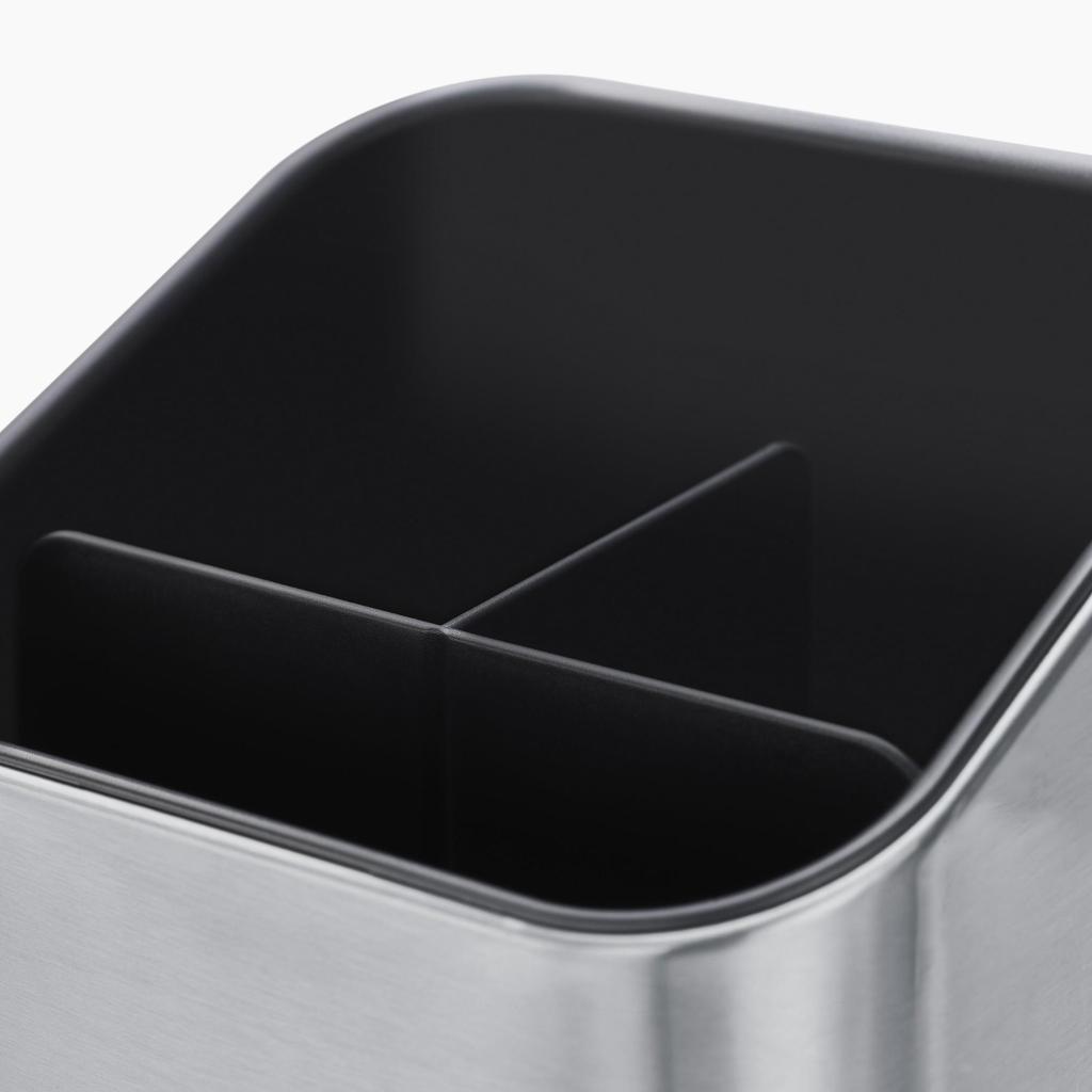 - Οι εσωτερικές διαχωριστικές μπάρες βοηθούν να χωρίσετε τα σκεύη σε μεμονωμένες ενότητες και διατηρούν την τάξη ακόμη και με μεγάλο αριθμό μαγειρικών βοηθημάτων.
