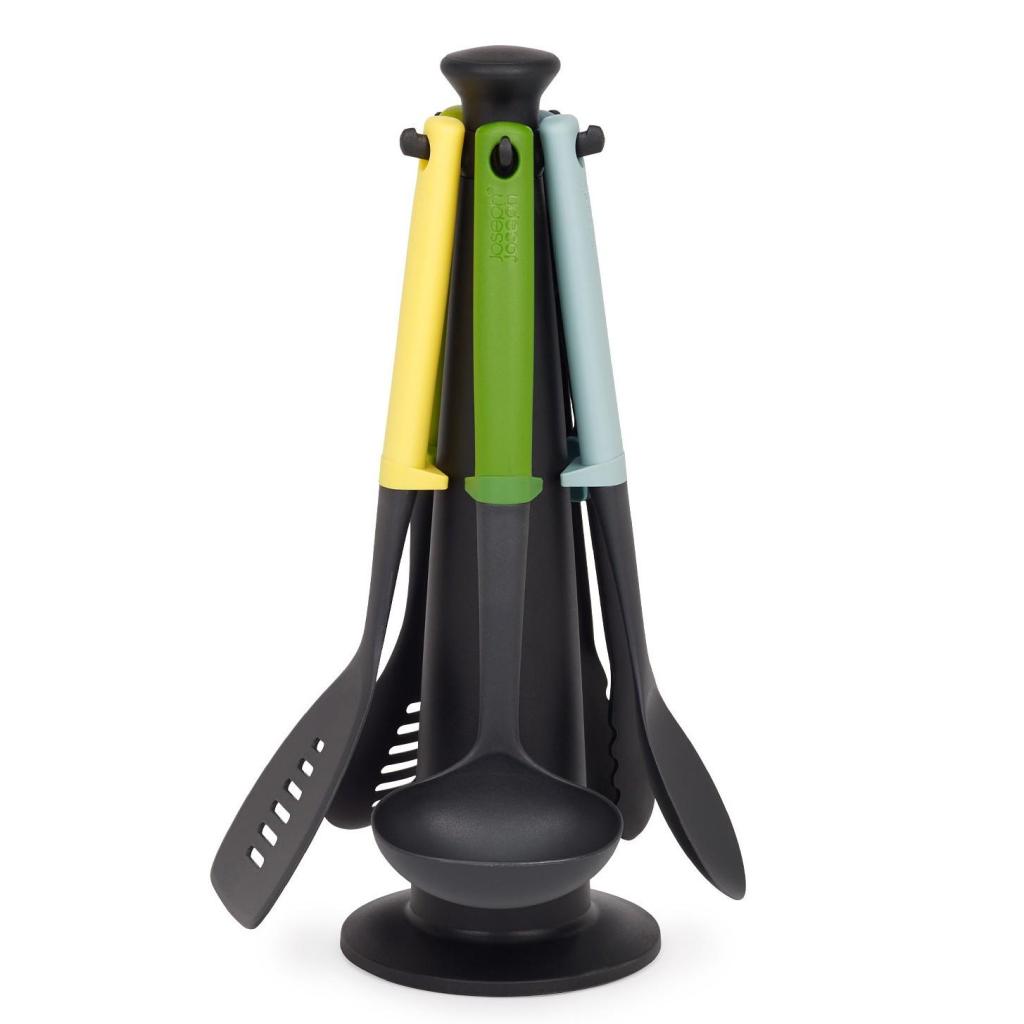 - Η σειρά περιλαμβάνει μια σπάτουλα με τρύπες, μια τρυπητή κουτάλα, μια κουτάλα σούπας, μια κουτάλα και μια λαβίδα κουζίνας, καλύπτοντας έτσι ένα ευρύ φάσμα κοινών μαγειρικών εργασιών.