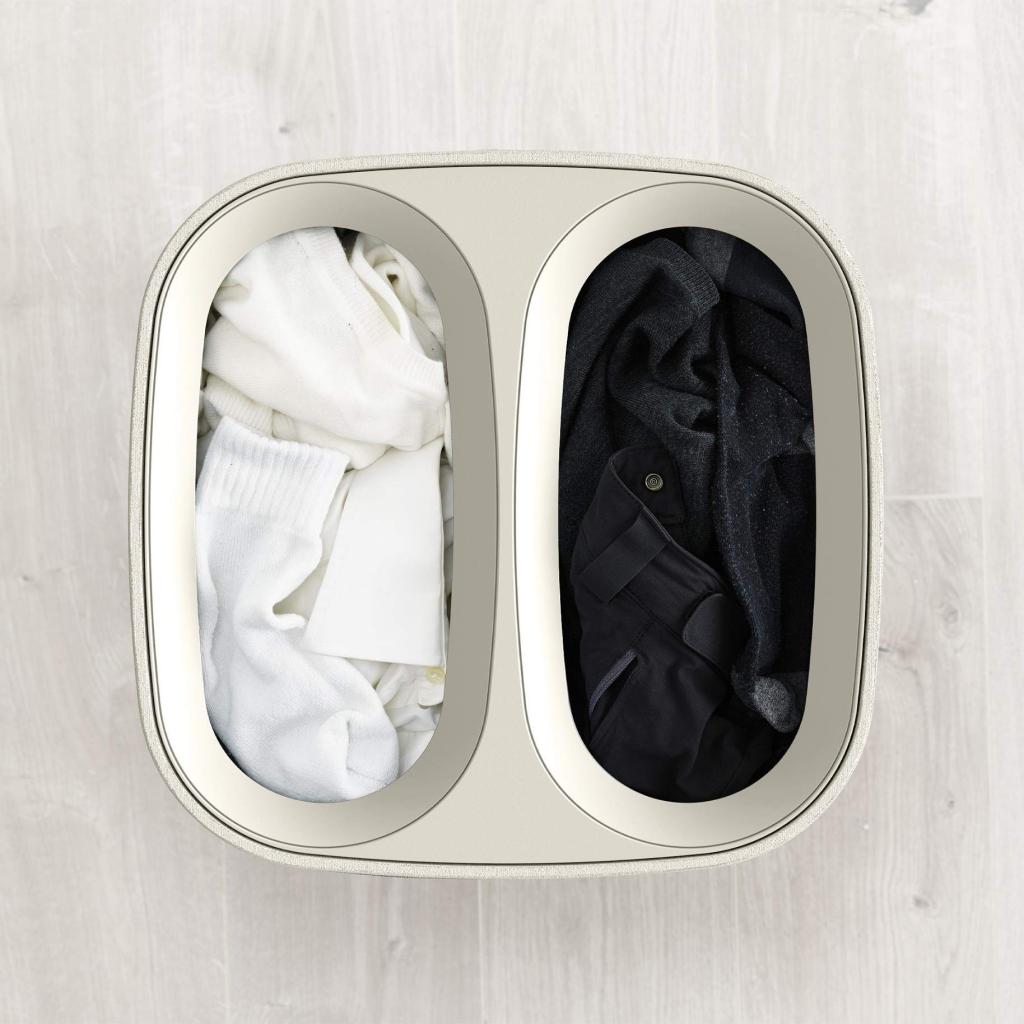- Δύο ξεχωριστοί χώροι χωρητικότητας 30 λίτρων επιτρέπουν την εύκολη διαλογή λευκών, σκούρων και χρωματιστών ρούχων ήδη κατά την αποθήκευση.