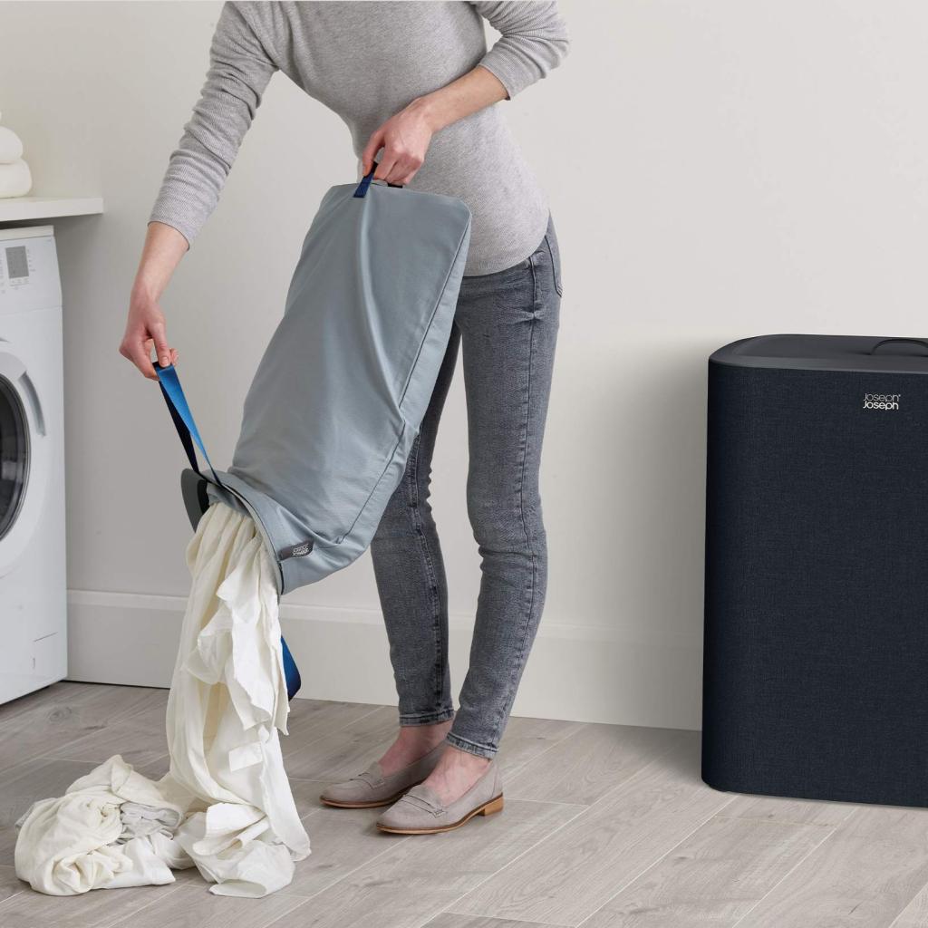 - Καλάθι για ρούχα πλυντηρίου Joseph Joseph TOTA TRIO σε μαύρο χρώμα προσφέρει μια πρακτική και σαφή λύση για την ταξινόμηση των ρούχων στο υπνοδωμάτιο, το μπάνιο ή τον βοηθητικό χώρο.