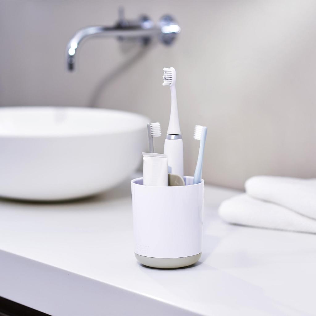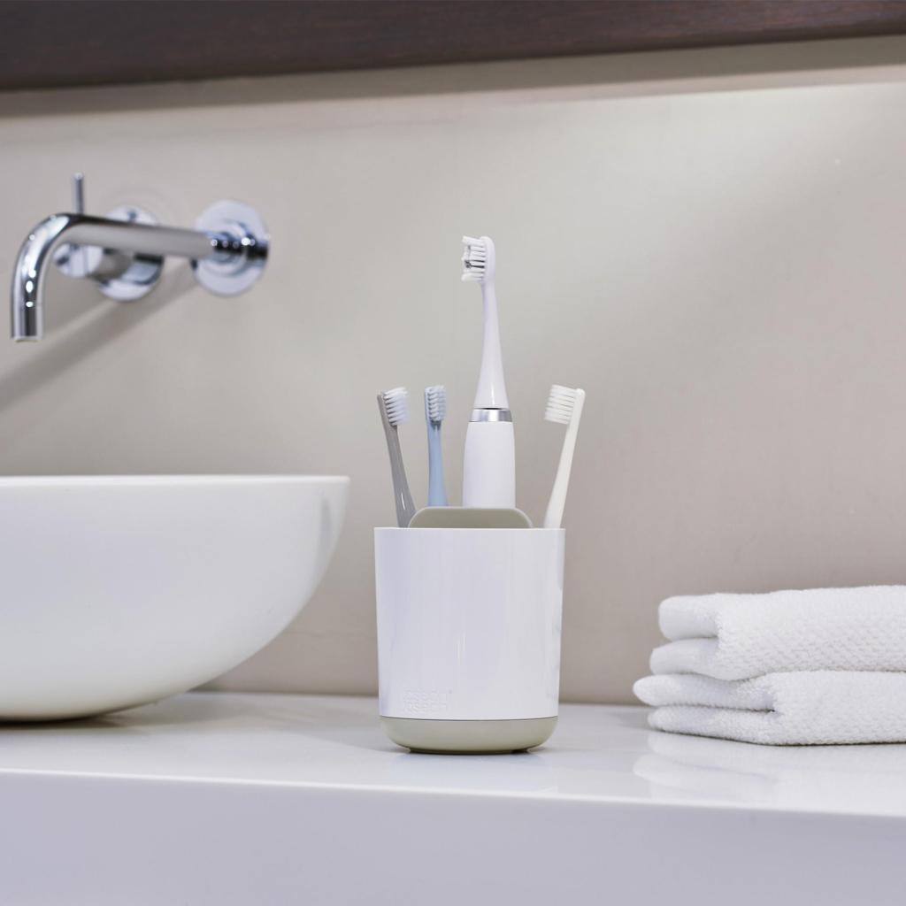 - Η βάση χωράει πολλές χειροκίνητες και ηλεκτρικές οδοντόβουρτσες, καθιστώντας την κατάλληλη για άτομα και μικρότερες οικογένειες.