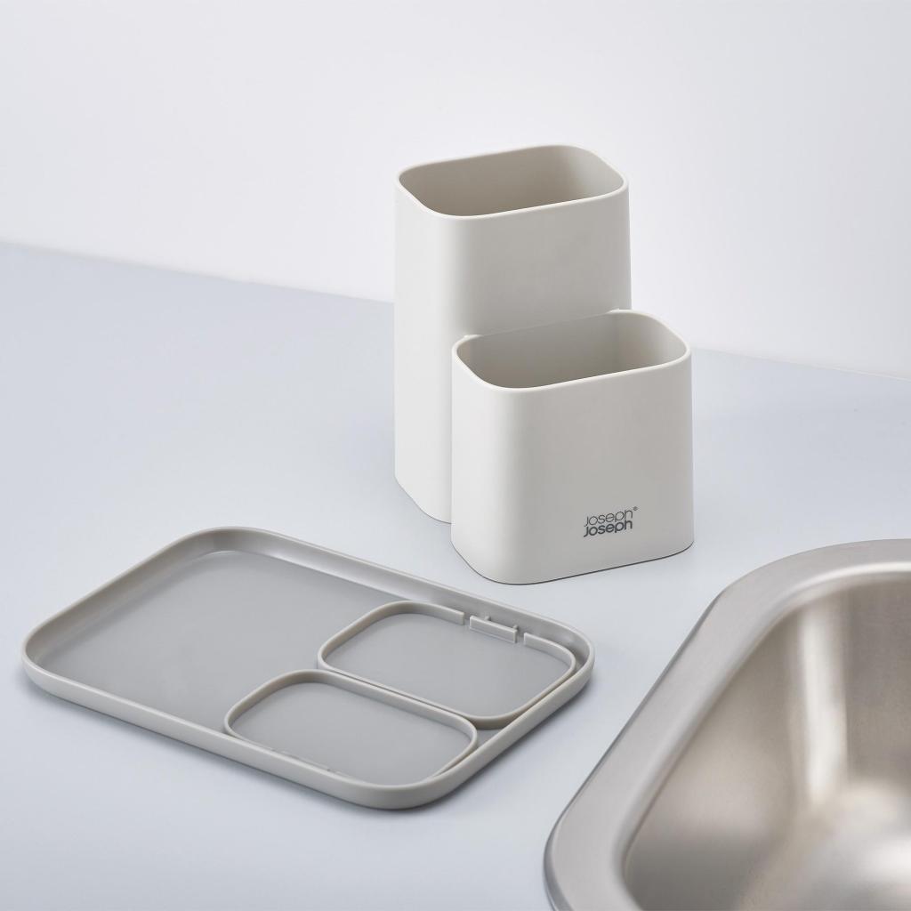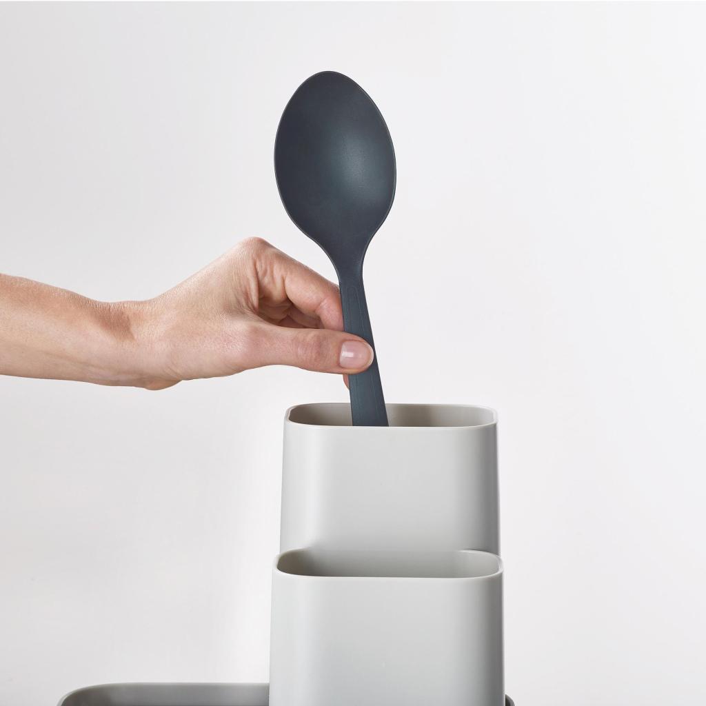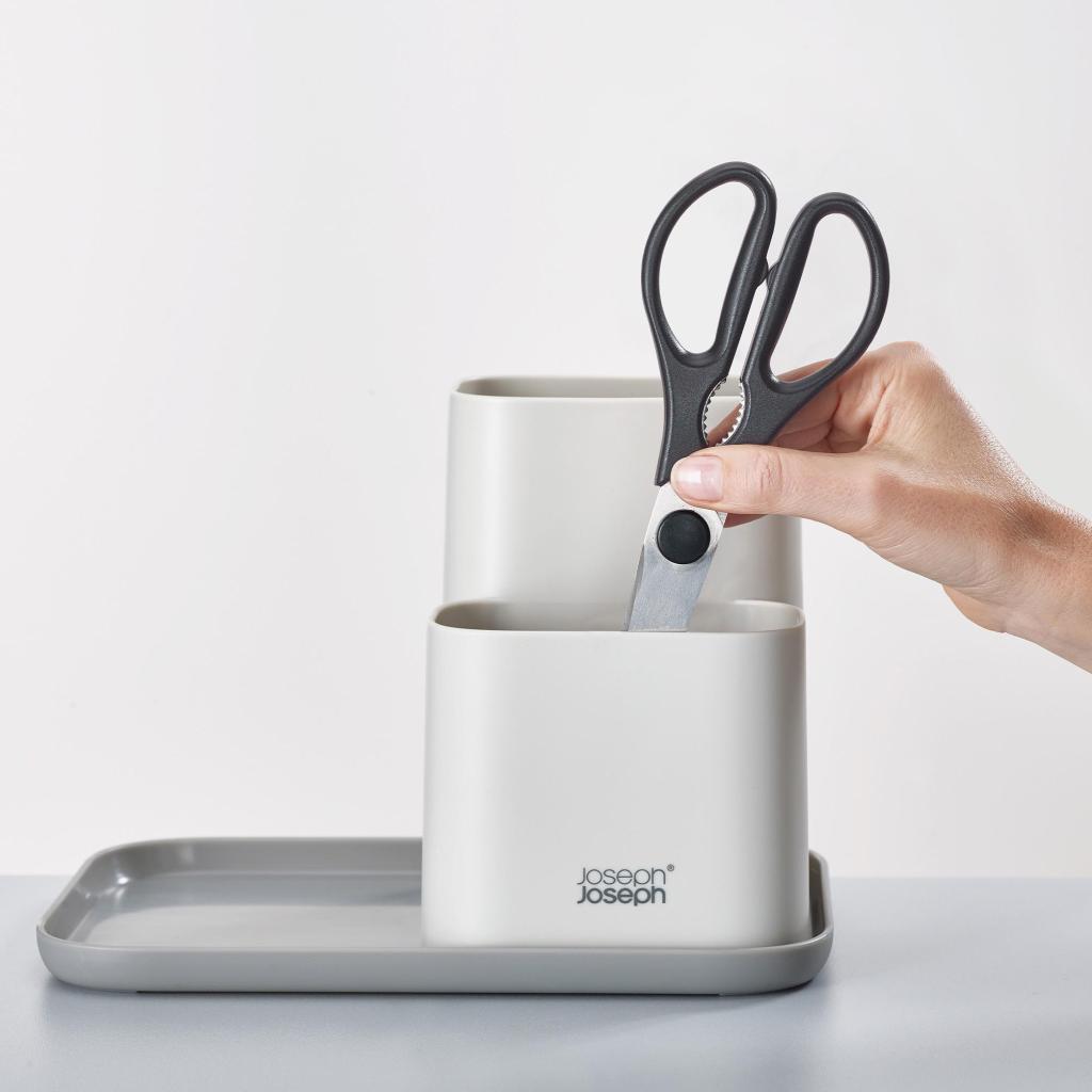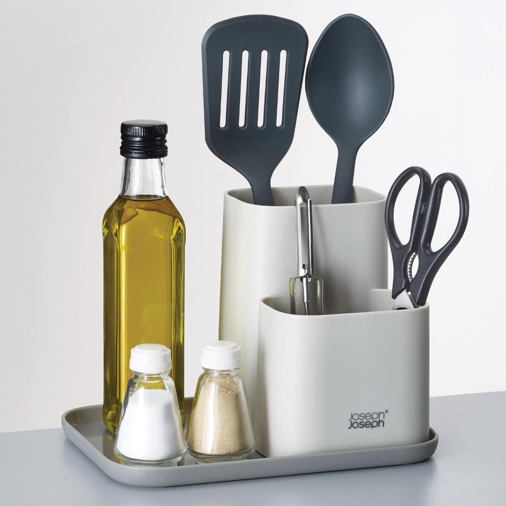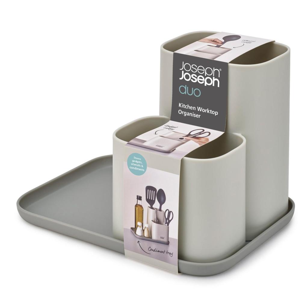 - Ο Joseph Joseph DUO διοργανωτής επιφάνειας εργασίας σε κομψό γκρι χρώμα προσφέρει μια τακτοποιημένη και κομψή λύση για την οργάνωση αξεσουάρ και σκευών κουζίνας.