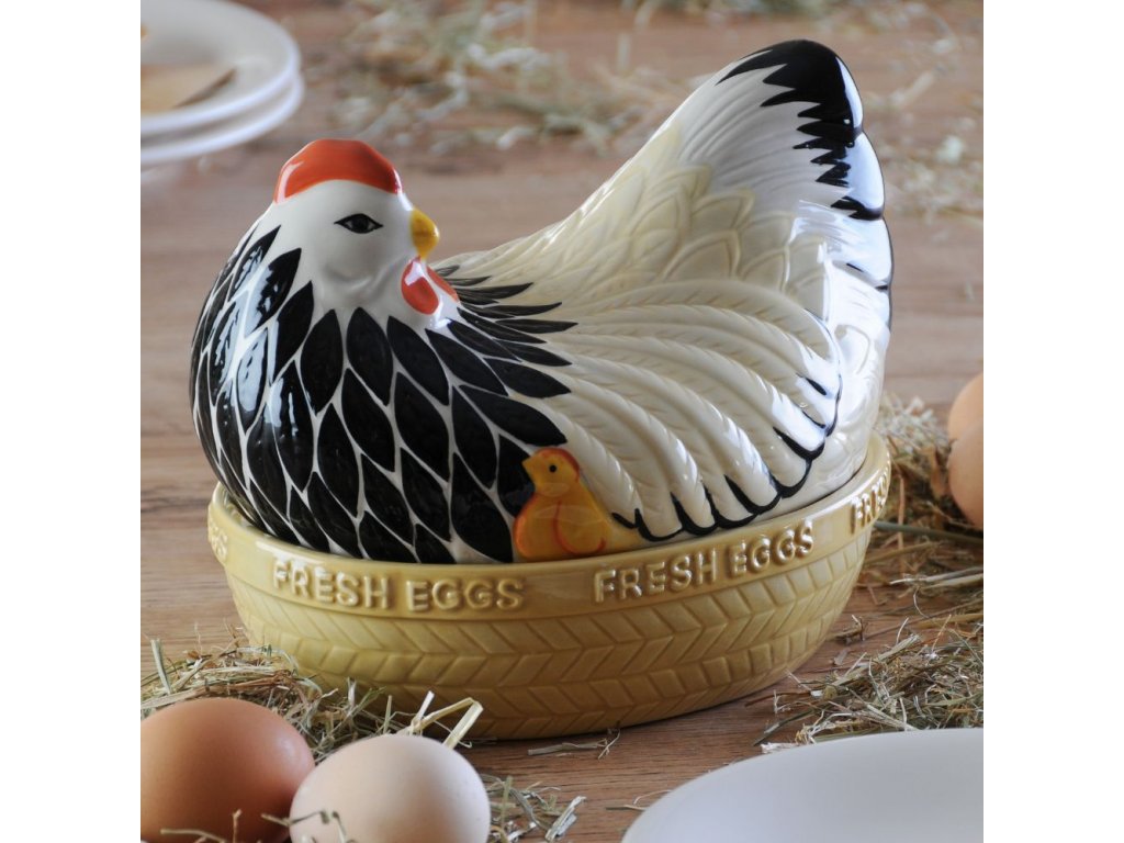 Βάζο αποθήκευσης τροφίμων MOTHER HEN 21 cm, μαύρο/λευκό, πήλινο υλικό, Mason Cash