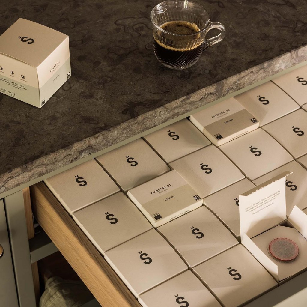 - Η συσκευασία της κάψουλας έχει σχεδιαστεί με έμφαση στον μινιμαλισμό και την κομψότητα, ώστε να φαίνεται κομψή όχι μόνο στο σπίτι, αλλά και σε ένα περιβάλλον γραφείου ή καφέ.