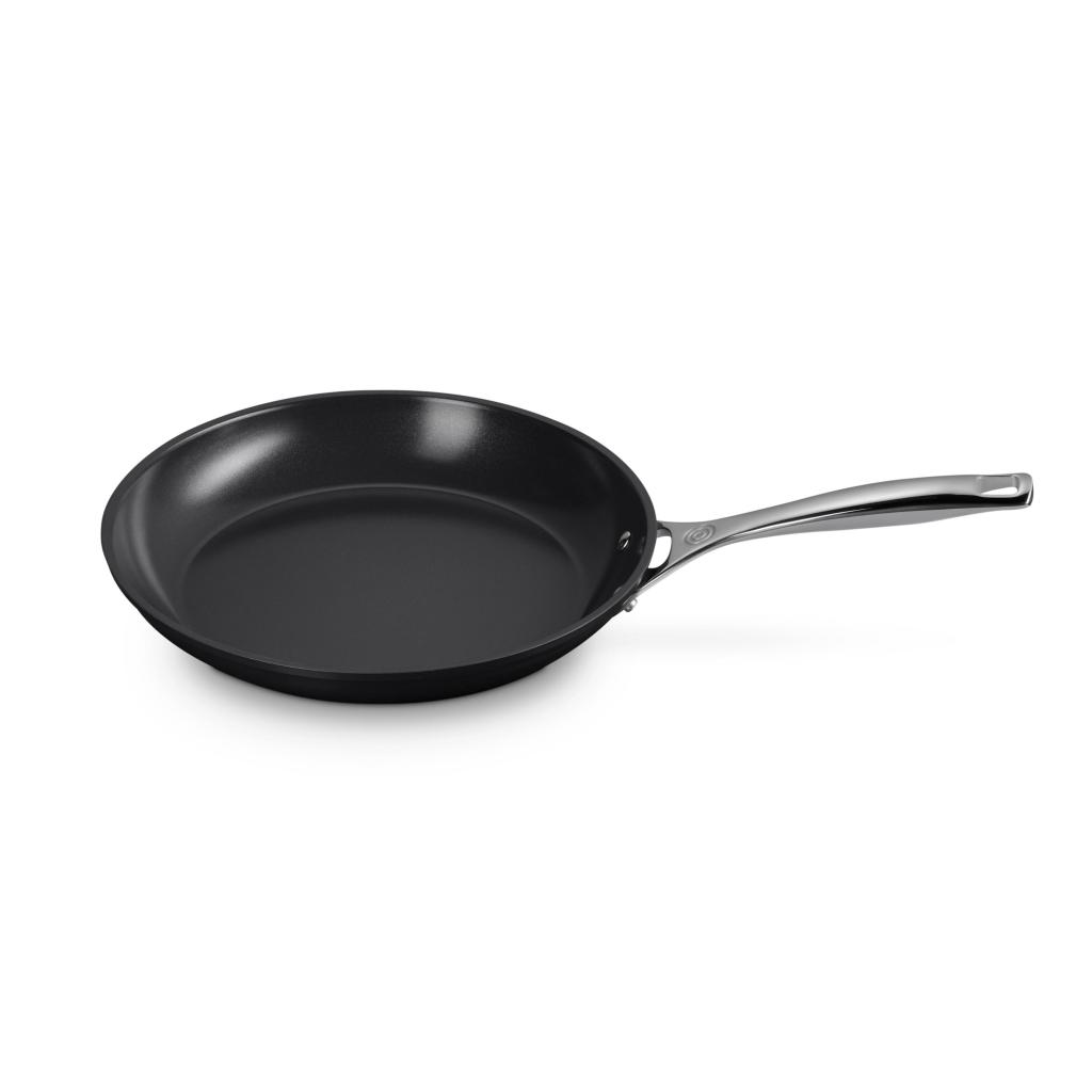 - Για την ανάμειξη και το γύρισμα, ιδανικά χρησιμοποιήστε σιλικονούχα σκεύη Le Creuset ή ανθεκτικά στη θερμότητα ξύλινα ή πλαστικά σκεύη. Τα μεταλλικά εργαλεία πρέπει να χρησιμοποιούνται μόνο με εξαιρετική προσοχή - δεν πρέπει να χρησιμοποιούνται με τραχύτητα ή να γρατζουνίζονται σε αντικολλητικές επιφάνειες. Ποτέ μην τα χτυπάτε στην επάνω άκρη του μαγειρικού σκεύους, αυτό μπορεί να προκαλέσει ζημιά. Επίσης, αποφύγετε να χρησιμοποιείτε μίξερ χειρός, σύρματα, μαχαίρια ή άλλα αιχμηρά εργαλεία απευθείας μέσα στο αντικολλητικό τηγάνι.