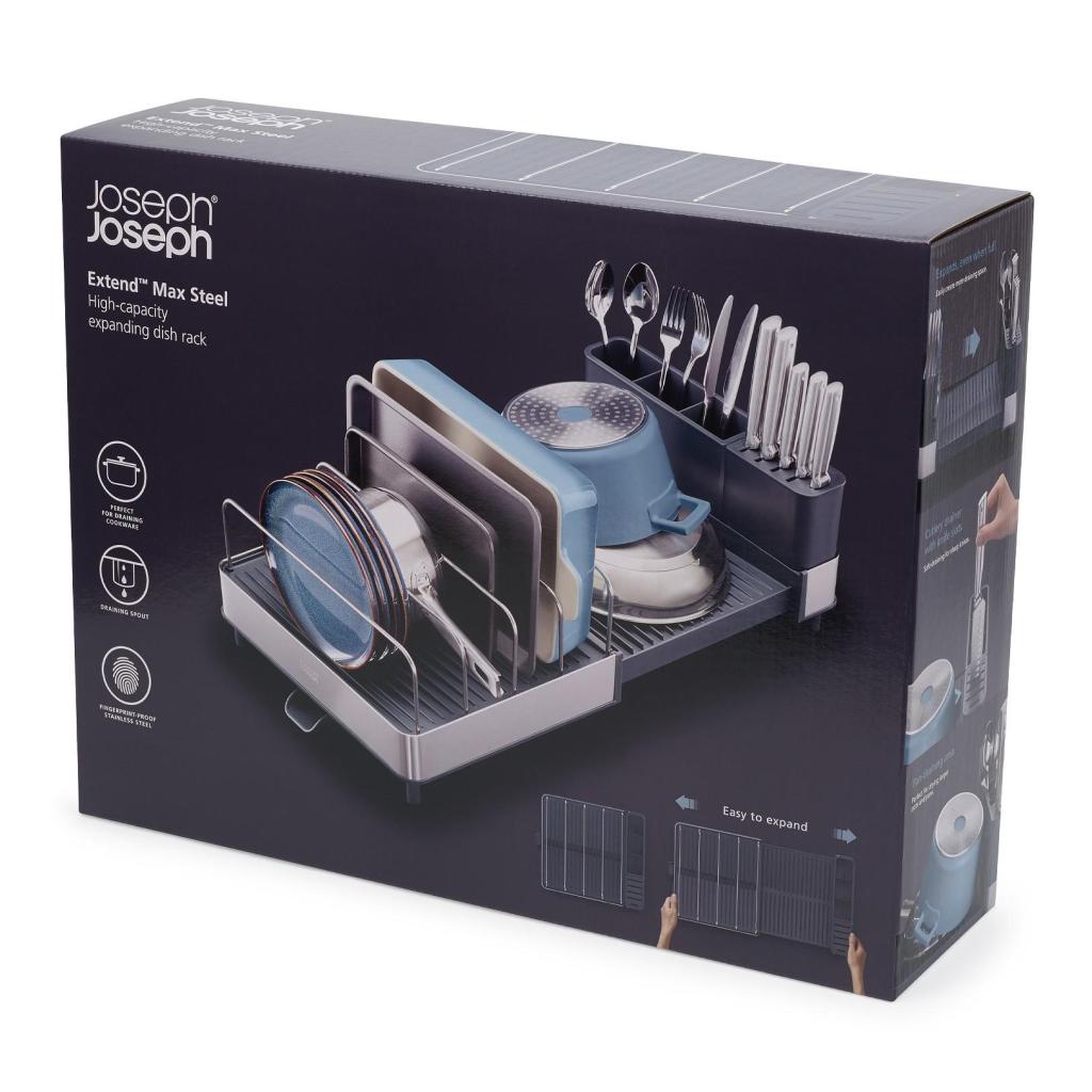 - Το Joseph Joseph EXTEND MAX είναι ένα πρακτικό αξεσουάρ κουζίνας που προσφέρει ευέλικτο χώρο για το στέγνωμα των σκευών, ενώ ταυτόχρονα βοηθά στη διατήρηση της επιφάνειας εργασίας τακτοποιημένης.