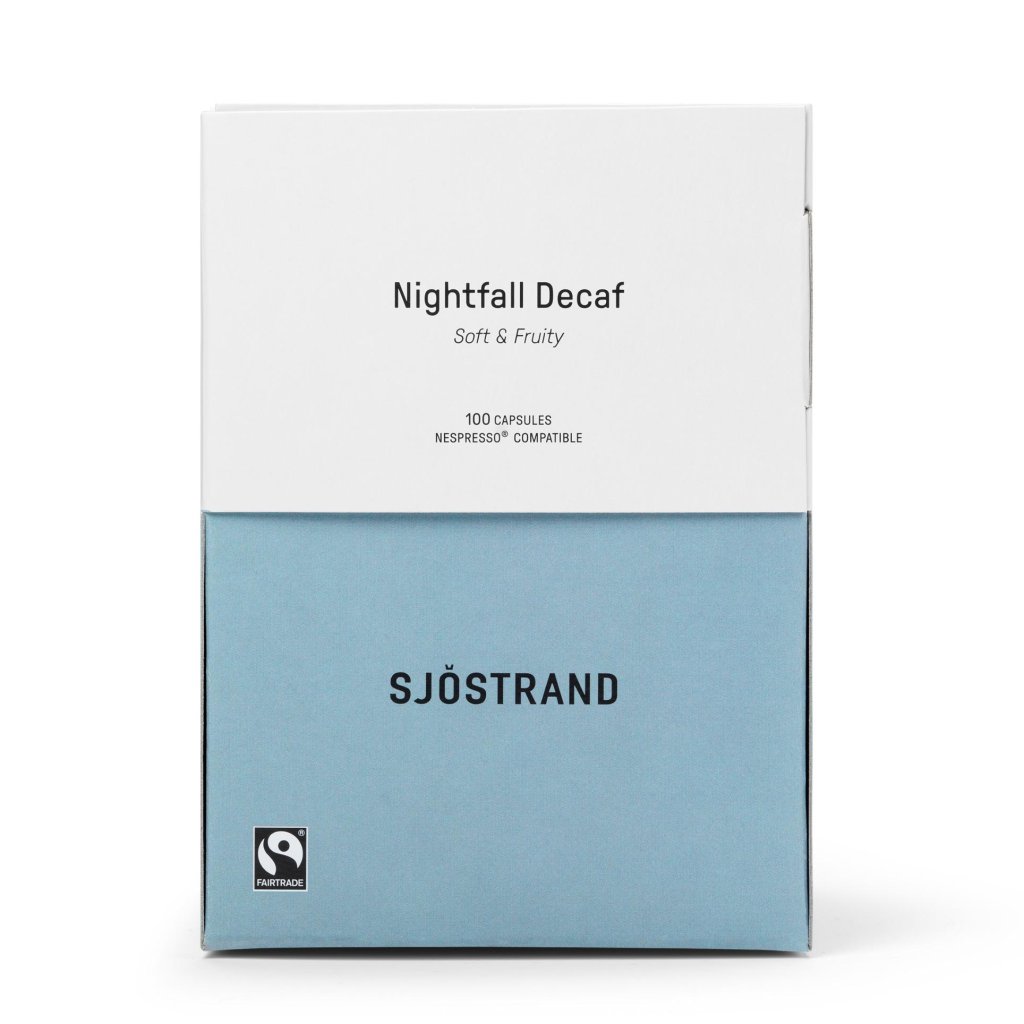 - Οι κάψουλες καφέ Sjöstrand NIGHTFALL DECAF είναι η ιδανική επιλογή για τους λάτρεις του καφέ που δεν θέλουν να απαρνηθούν ένα φλιτζάνι καφέ το βράδυ χωρίς να ανησυχούν για την καφεΐνη.
