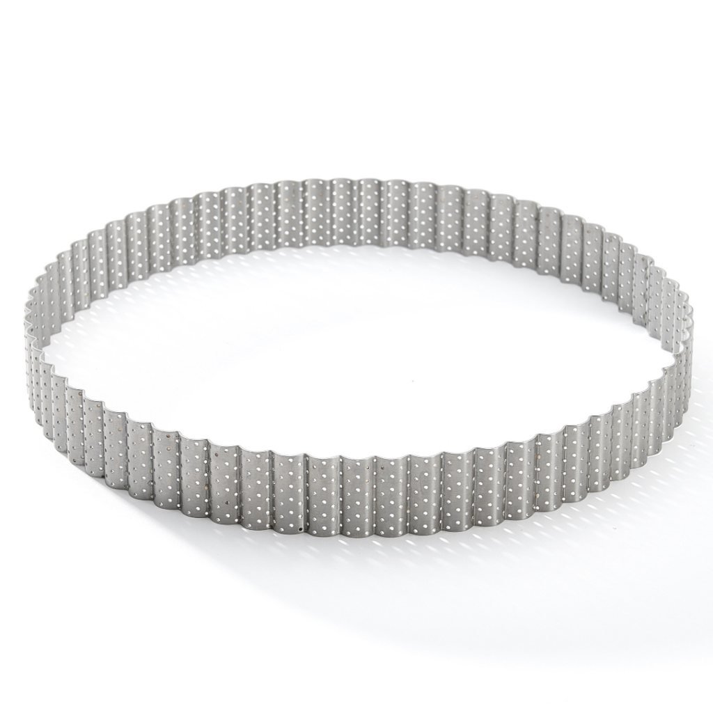 - Το οδοντωτό διάτρητο χείλος από ανοξείδωτο ατσάλι de Buyer με ύψος 3 cm έχει σχεδιαστεί για την προετοιμασία κομψών κέικ, τάρτων και βάσεων κέικ