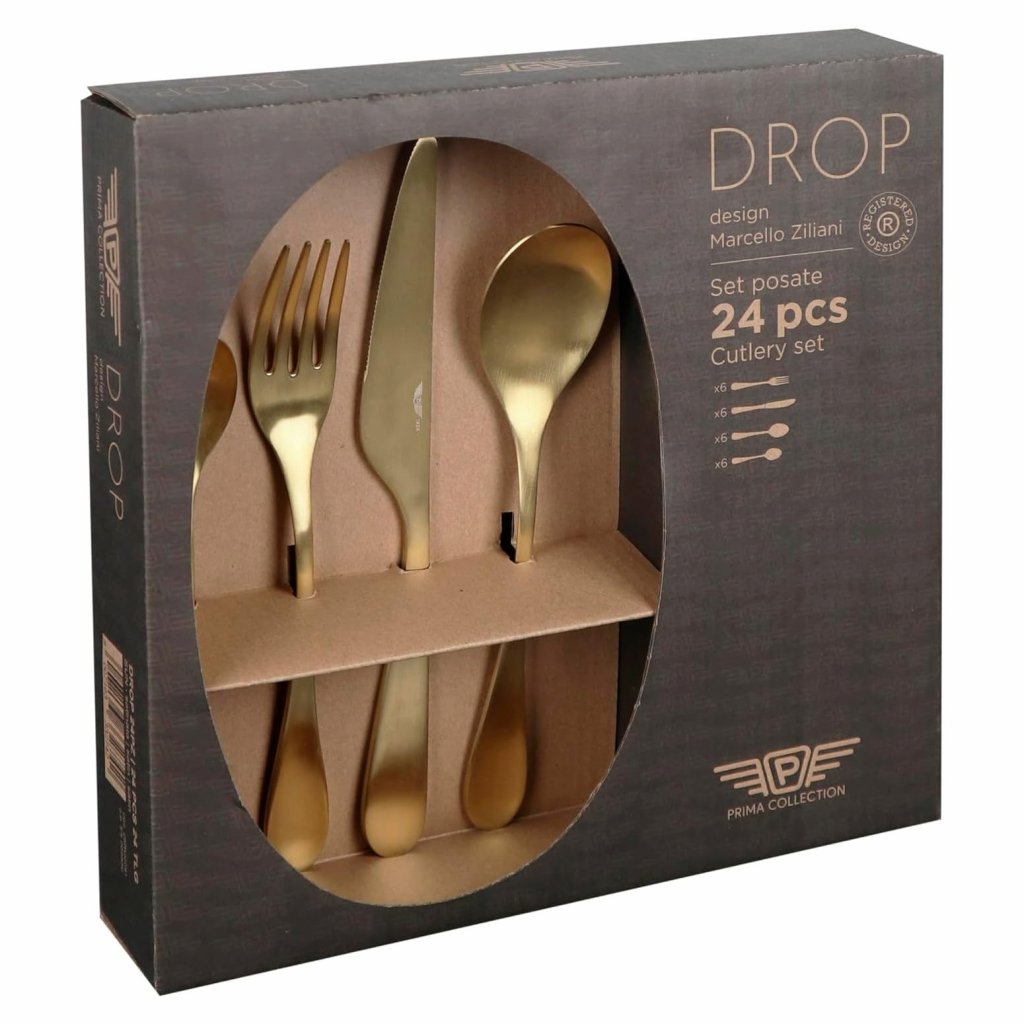 Σετ μαχαιροπίρουνων DROP SUN, σετ 24 τμχ, χρυσαφί, Πιντινόξ