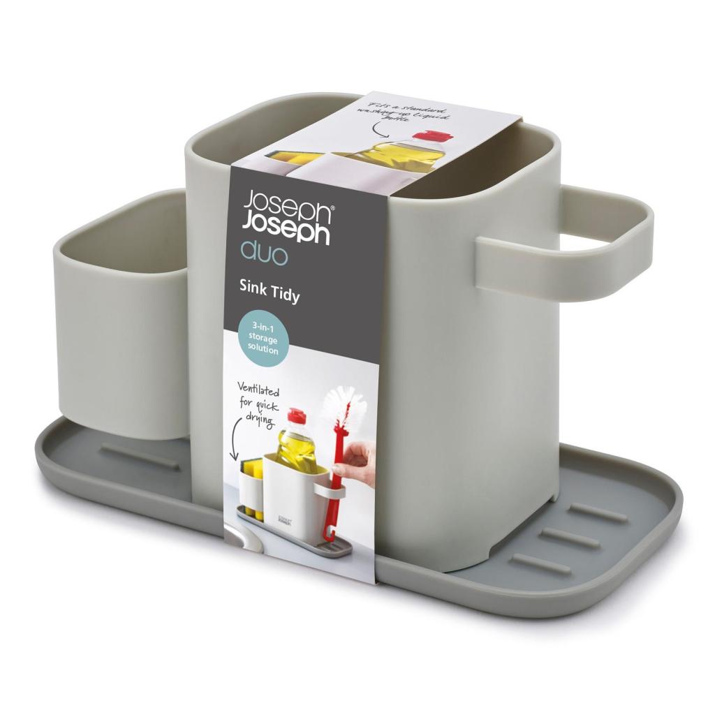 - Ο πρακτικός θήκη για τον νεροχύτη Joseph Joseph DUO προσφέρει μια ευδιάκριτη και συμπαγή λύση για την αποθήκευση των απορρυπαντικών πιάτων ακριβώς δίπλα στον νεροχύτη της κουζίνας.