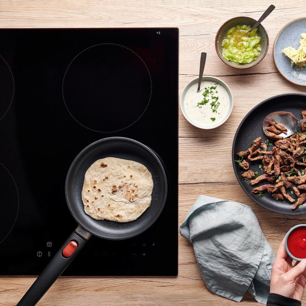 - το τηγάνι είναι συμβατό με όλους τους τύπους εστιών, συμπεριλαμβανομένων των επαγωγικών, του φυσικού αερίου, των ηλεκτρικών και των κεραμικών