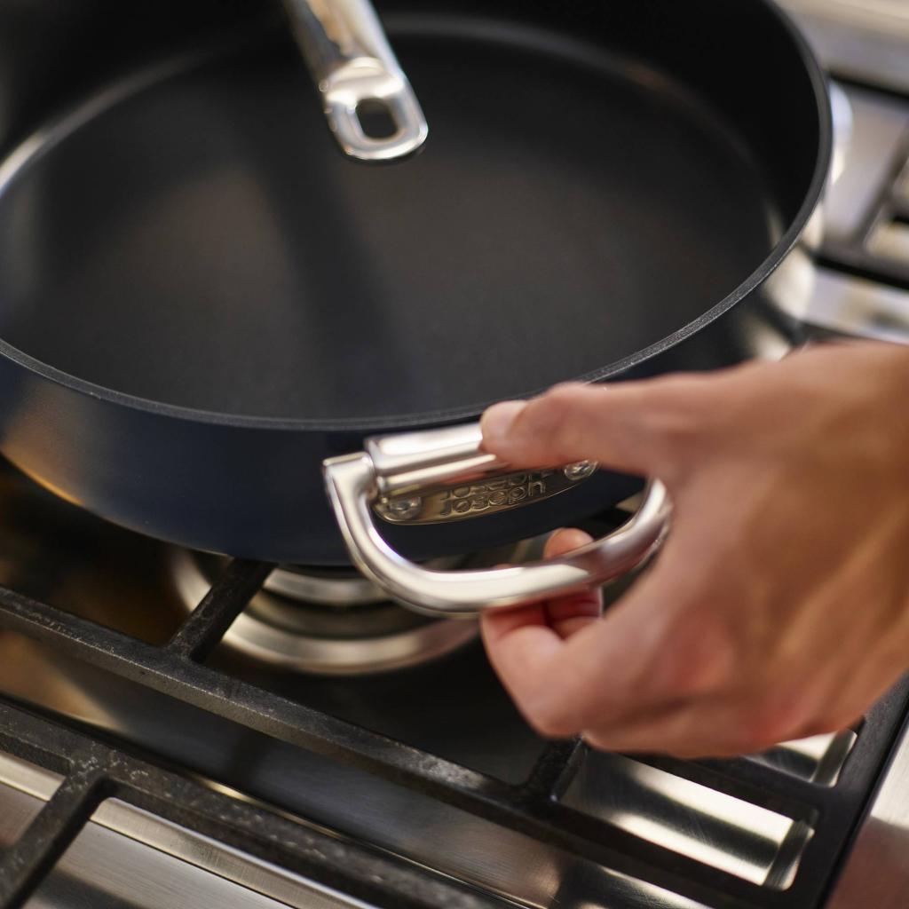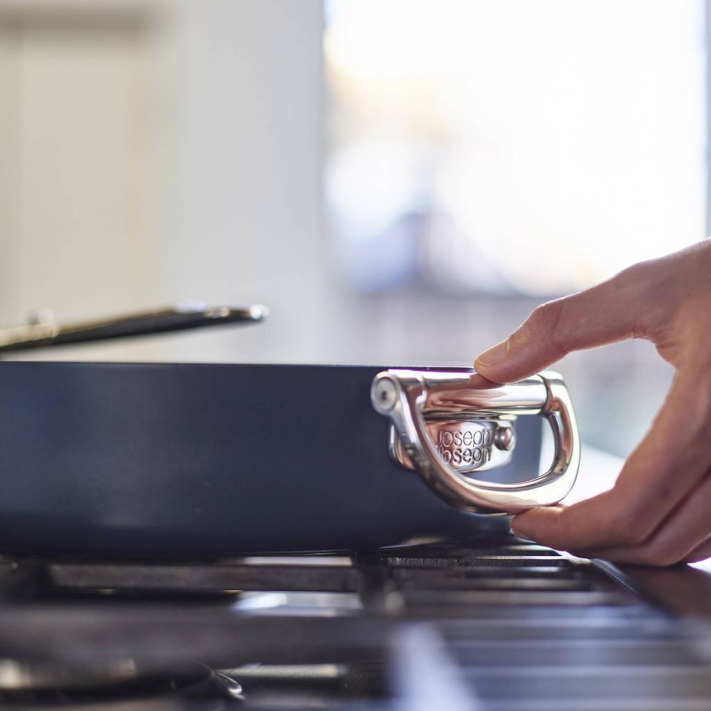 Μαγειρικά σκεύη που κατανοούν την πραγματικότητα της σύγχρονης κουζίνας - Joseph Joseph SPACE. Κατά τη διάρκεια του μαγειρέματος, στέκεται σταθερά και σίγουρα, έτοιμο να αντιμετωπίσει τα πάντα, από ένα γρήγορο πρωινό μέχρι ένα αυτοσχέδιο δείπνο. Μόλις όμως έρθει η ώρα για τακτοποίηση, αλλάζει χαρακτήρα και προσαρμόζεται διακριτικά στον χώρο, χωρίς να διεκδικεί περισσότερο χώρο από ό,τι είναι απολύτως απαραίτητο. Τι περισσότερο θα μπορούσες να θέλεις;