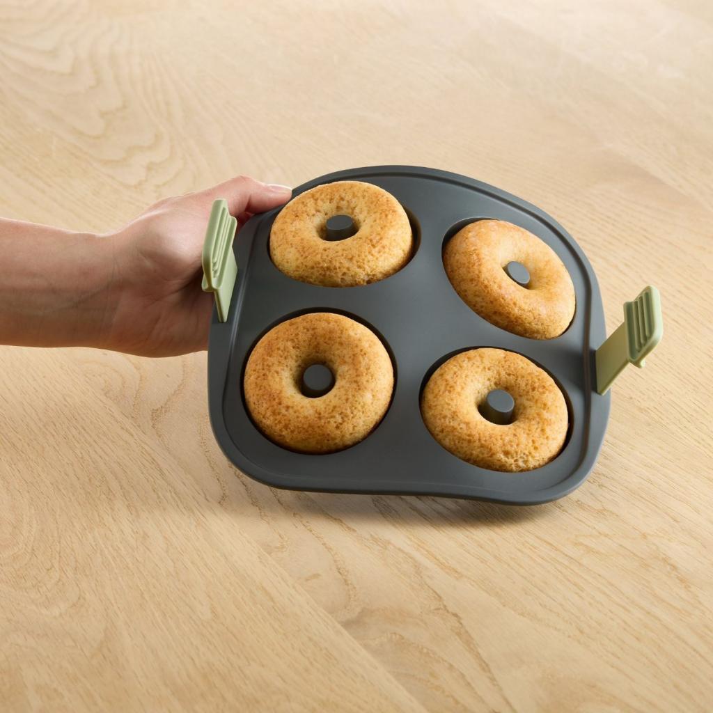 - Το Καλούπι για ντόνατς Lékué επιτρέπει την εύκολη και γρήγορη παρασκευή σπιτικών ντόνατς απευθείας σε φριτέζα θερμού αέρα χωρίς τηγάνισμα σε λάδι.