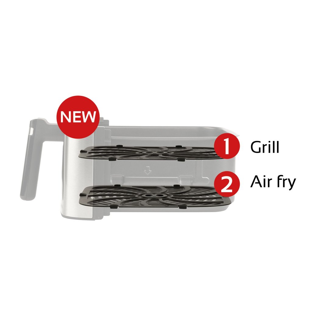 - ο αφαιρούμενος εσωτερικός δίσκος μπορεί να ανασηκωθεί για ακόμα πιο τραγανά αποτελέσματα μαγειρέματος