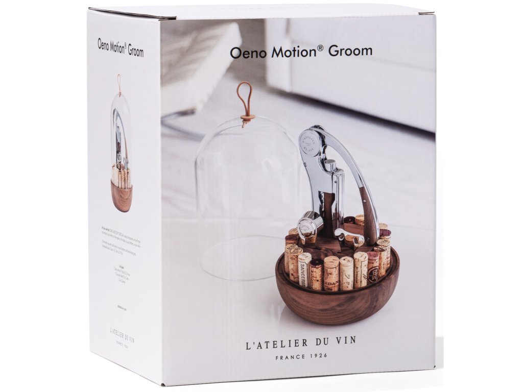 - OENO MOTION GROOM περιλαμβάνει χώρο για την αποθήκευση και την προβολή έως και 22 φελλών ως αναμνηστικά δώρα