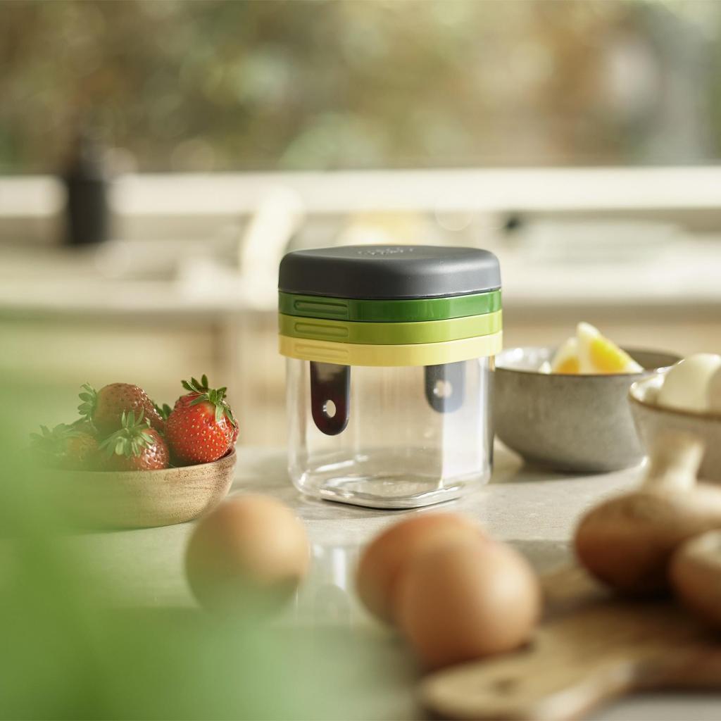 - Ο συμπαγής κόφτης λαχανικών Joseph Joseph MULTI-PREP MINI επιτρέπει γρήγορο και ακριβή τεμαχισμό μαλακών τροφίμων χάρη σε τρία εναλλάξιμα εξαρτήματα από ανοξείδωτο ατσάλι αποθηκευμένα σε πρακτικό δοχείο.