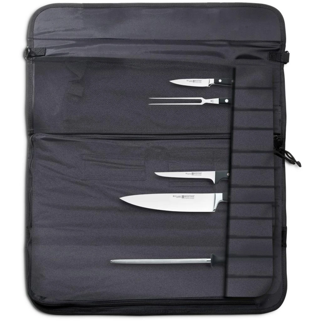 Η τσάντα μάγειρα για μαχαίρια και αξεσουάρ, χωρίς εξοπλισμό, είναι κατασκευασμένη από πλένεται, ισχυρό ύφασμα. Η τσάντα μπορεί να χωρέσει έως και 10 μαχαίρια και αξεσουάρ με μέγιστο μήκος 32 cm. Με φερμουάρ για το κλείσιμο του εσωτερικού στρώματος.