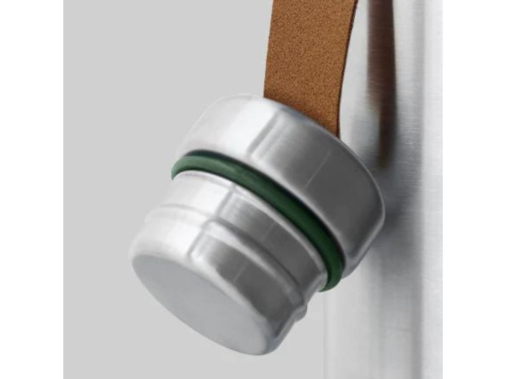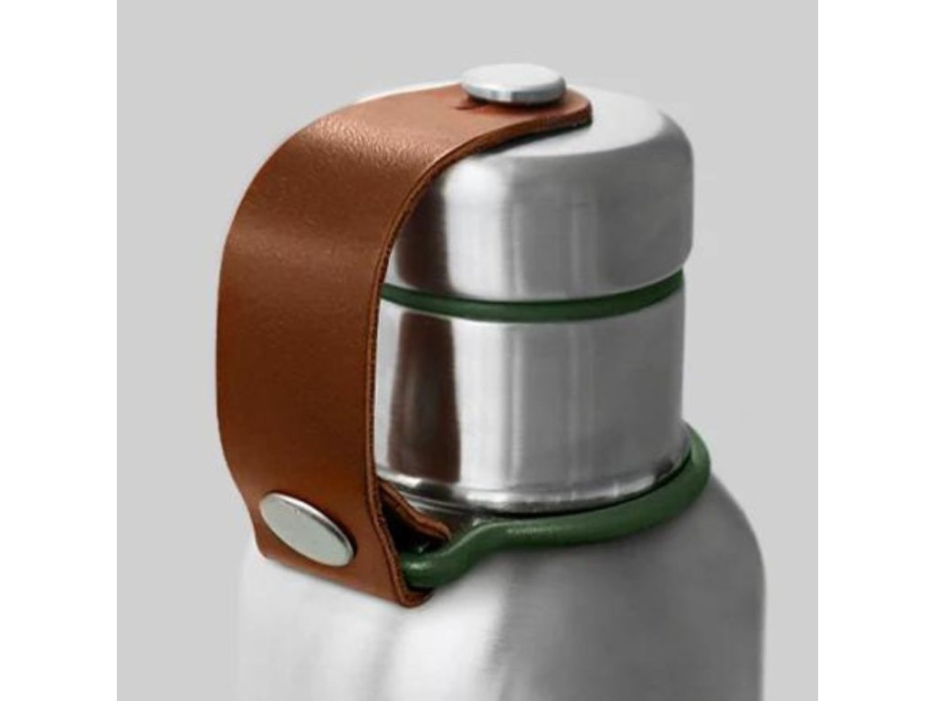 - κομψό λουράκι από ψεύτικο δέρμα συγκρατεί το καπάκι και χρησιμεύει επίσης ως χειρολαβή