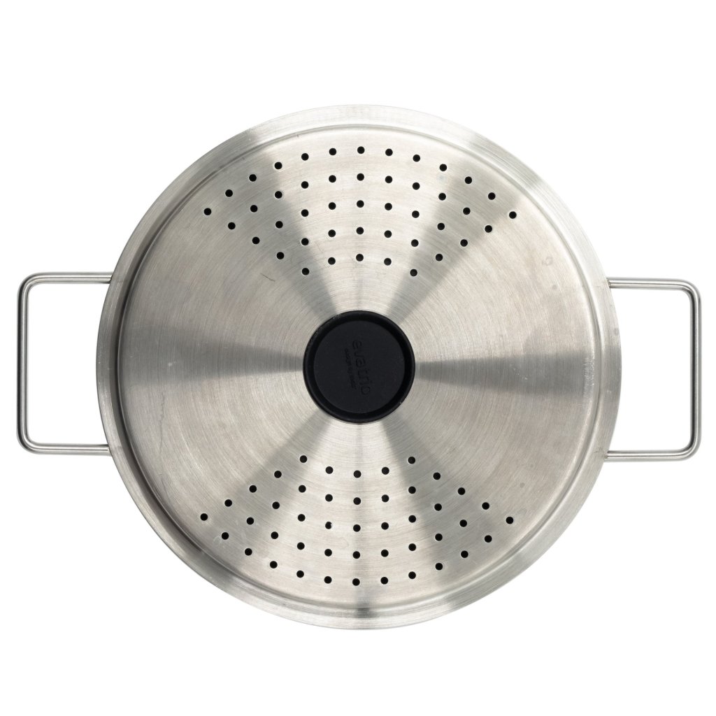 - Οι τυποποιημένες διαστάσεις εξασφαλίζουν συμβατότητα με όλες τις κατσαρόλες και τηγάνια EVA TRIO, επιτρέποντας εύκολο συνδυασμό