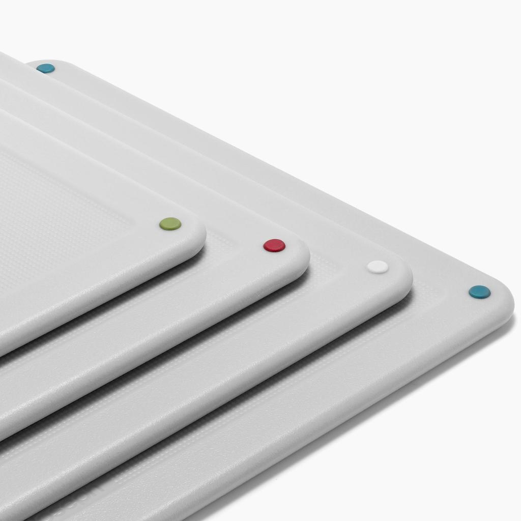 - Κάθε σανίδα κοπής είναι χρωματικά κωδικοποιημένη, ώστε κατά το μαγείρεμα να επιλέγετε εύκολα τη σωστή σανίδα κοπής για συγκεκριμένο τύπο τροφίμων και να οργανώνετε καλύτερα την προετοιμασία των γευμάτων.