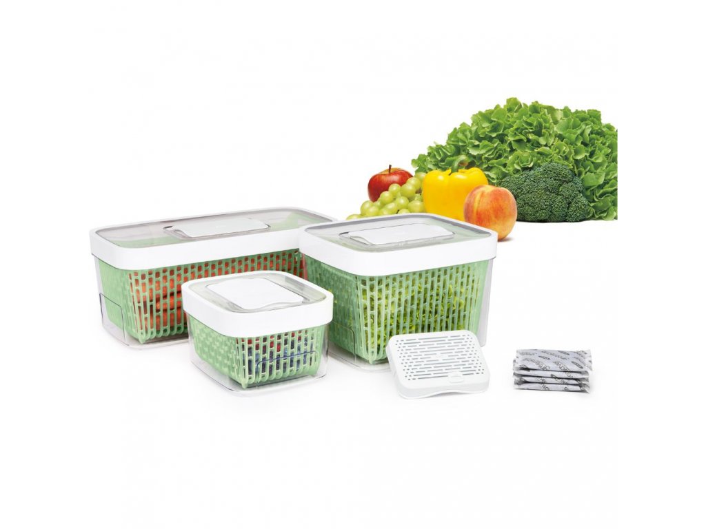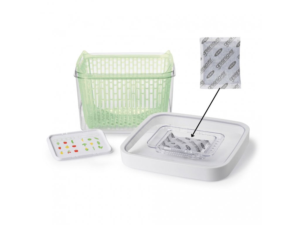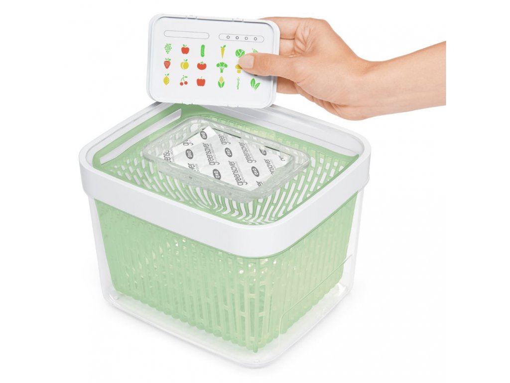 Αν ψάχνετε μια εύκολη λύση για να παρατείνετε τη φρεσκάδα των φρούτων και των λαχανικών που αποθηκεύονται στο ψυγείο σας, δοκιμάστε το GREENSAVER GOOD GRIPS . Αυτά τα ειδικά κουτιά με φίλτρο και καλάθι δεν θα επιτρέψουν στα τρόφιμά σας να χαλάσουν πριν την ώρα τους.