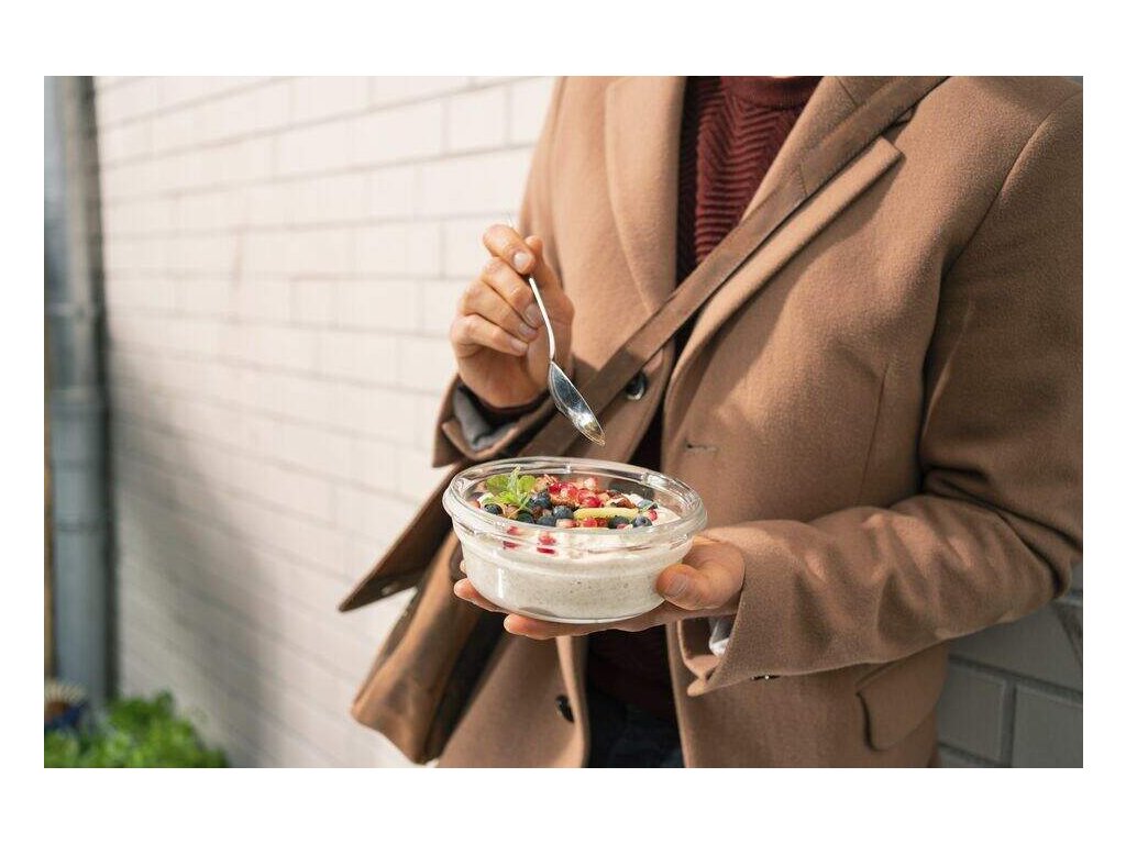 Το γυάλινο στρογγυλό βάζο τροφίμων 0,6 λίτρων διαθέτει τέλεια σφραγίδα σιλικόνης 100% στεγανή που διατηρεί τα τρόφιμά σας έως και δύο φορές πιο φρέσκα και δεν χρειάζεται να ανησυχείτε για το περιεχόμενο που θα διαρρεύσει. Μπορείτε να τοποθετήσετε το κουτί με ασφάλεια στο φούρνο, στο φούρνο μικροκυμάτων, στην κατάψυξη έως -40 °C και, φυσικά, στο πλυντήριο πιάτων. Όταν το αποθηκεύετε, θα εκτιμήσετε το ενισχυμένο χείλος του, το οποίο εξασφαλίζει σταθερή στοίβαξη των δοχείων για εξοικονόμηση χώρου.