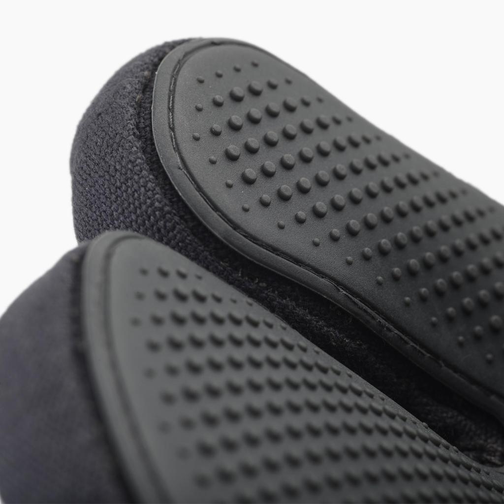 - Το επιφανειακό μέρος από σιλικόνη με λεπτή αντιολισθητική δομή εξασφαλίζει σταθερό κράτημα ακόμα και κατά τη διαχείριση βαρύτερων σκευών από χυτοσίδηρο ή ατσάλι.