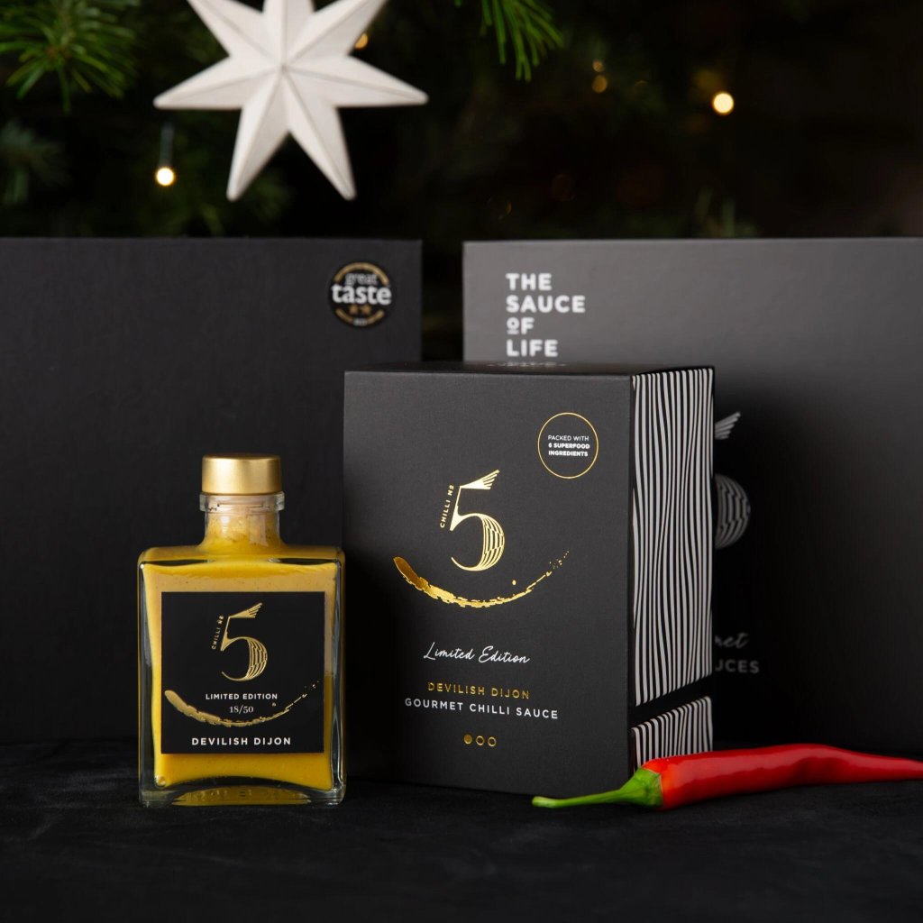 - Αυτή η περιορισμένης έκδοσης DEVILISH DIJON από την Chilli No5 είναι μια ξεχωριστή καυτερή σάλτσα μουστάρδας που συνδυάζει την παραδοσιακή μουστάρδα Ντιζόν με ένα πικάντικο μείγμα πιπεριών τσίλι για την απόλυτη γευστική εμπειρία.