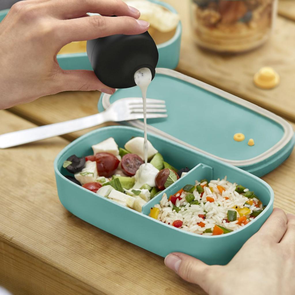 - Το συμπαγές δοχείο Lékué χρησιμοποιείται για τη μεταφορά σπιτικών σαλτσών και ντρέσινγκ που θα προσθέσουν επιπλέον γεύση στο φαγητό σας ακόμα και εν κινήσει.