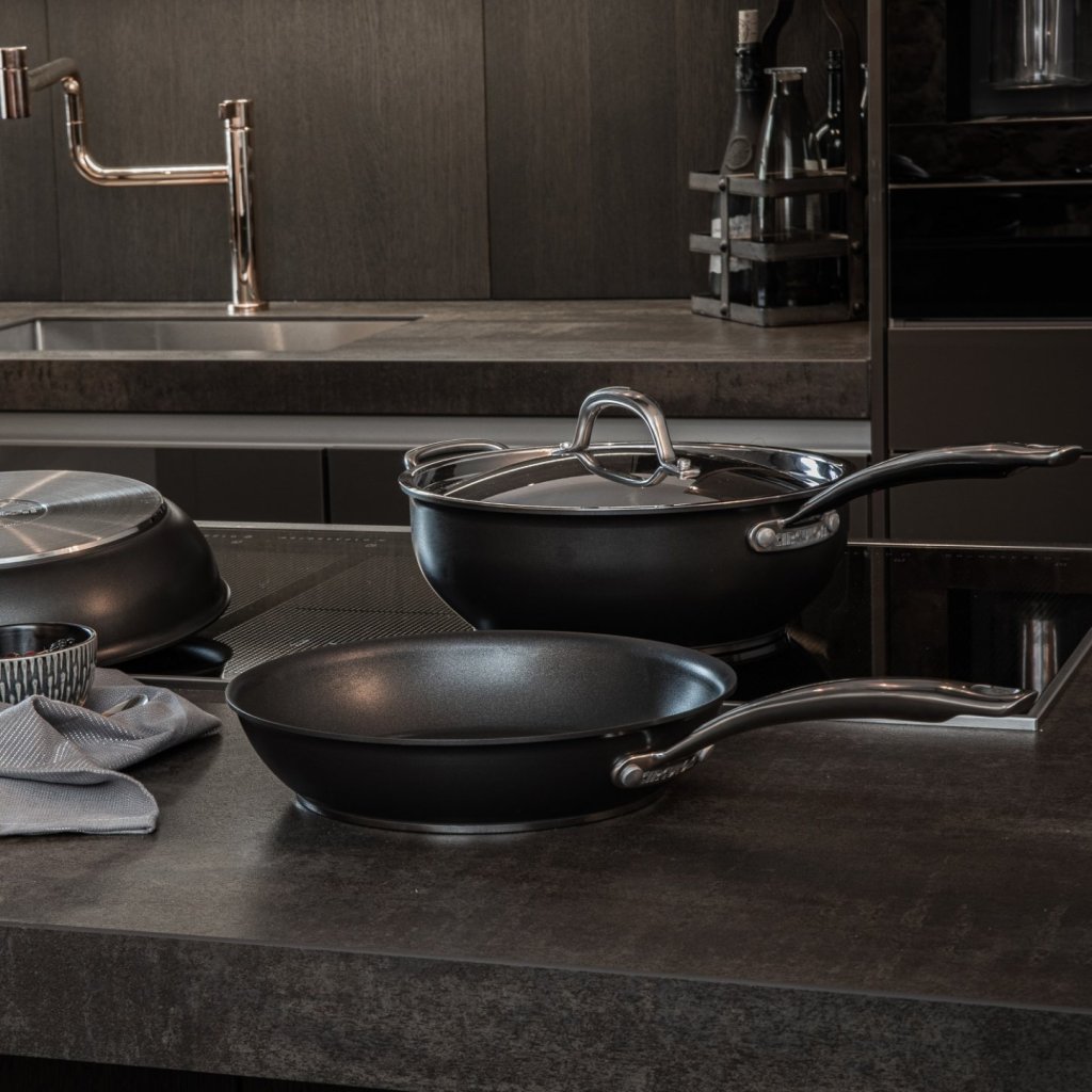 - σετ από 2 επαγγελματικά αντικολλητικά τηγάνια, σχεδιασμένα για ανώτερη απόδοση στο μαγείρεμα, επιτρέποντας τη δημιουργικότητα και την αυτοπεποίθηση στην προετοιμασία κάθε πιάτου