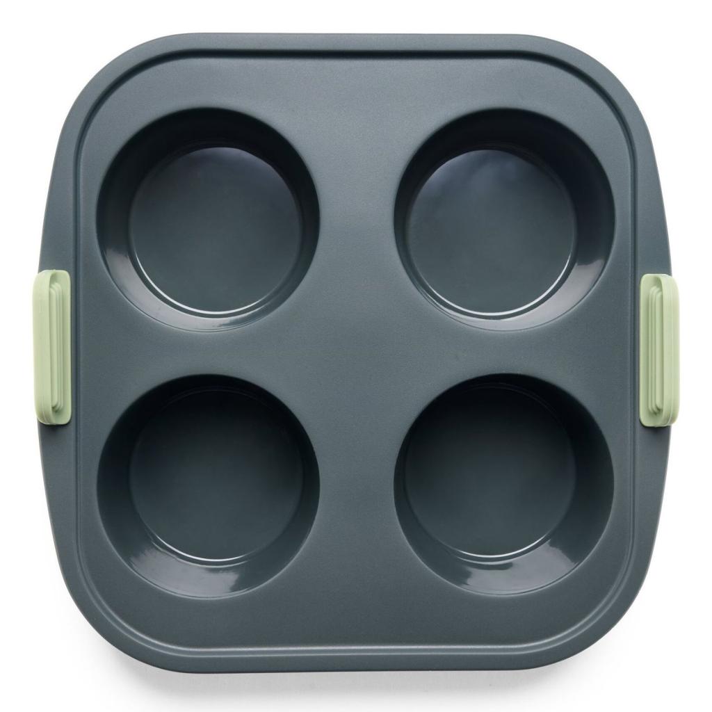 - Κατασκευασμένο από 100% πλατινένια σιλικόνη με αντικολλητική επιφάνεια που επιτρέπει στα ψημένα muffins να αναποδογυρίζονται εύκολα χωρίς να κολλάνε.