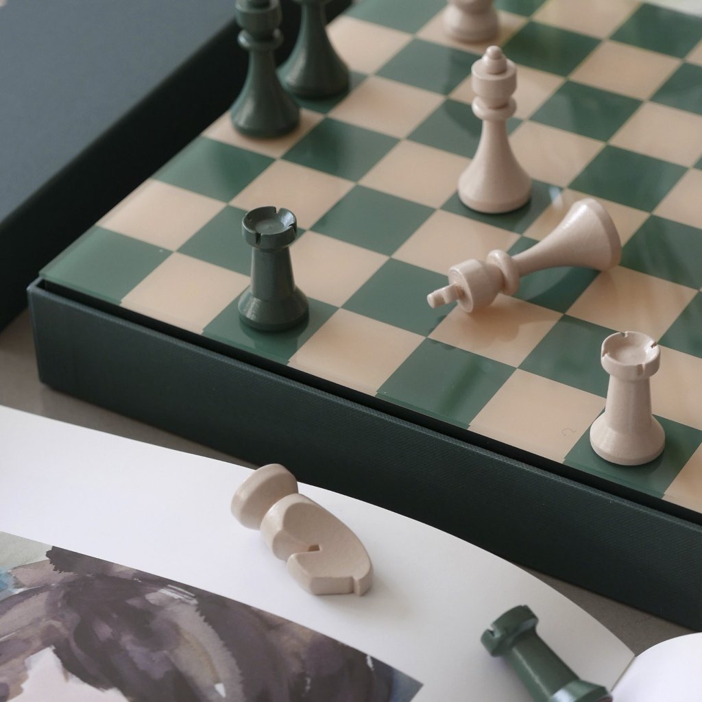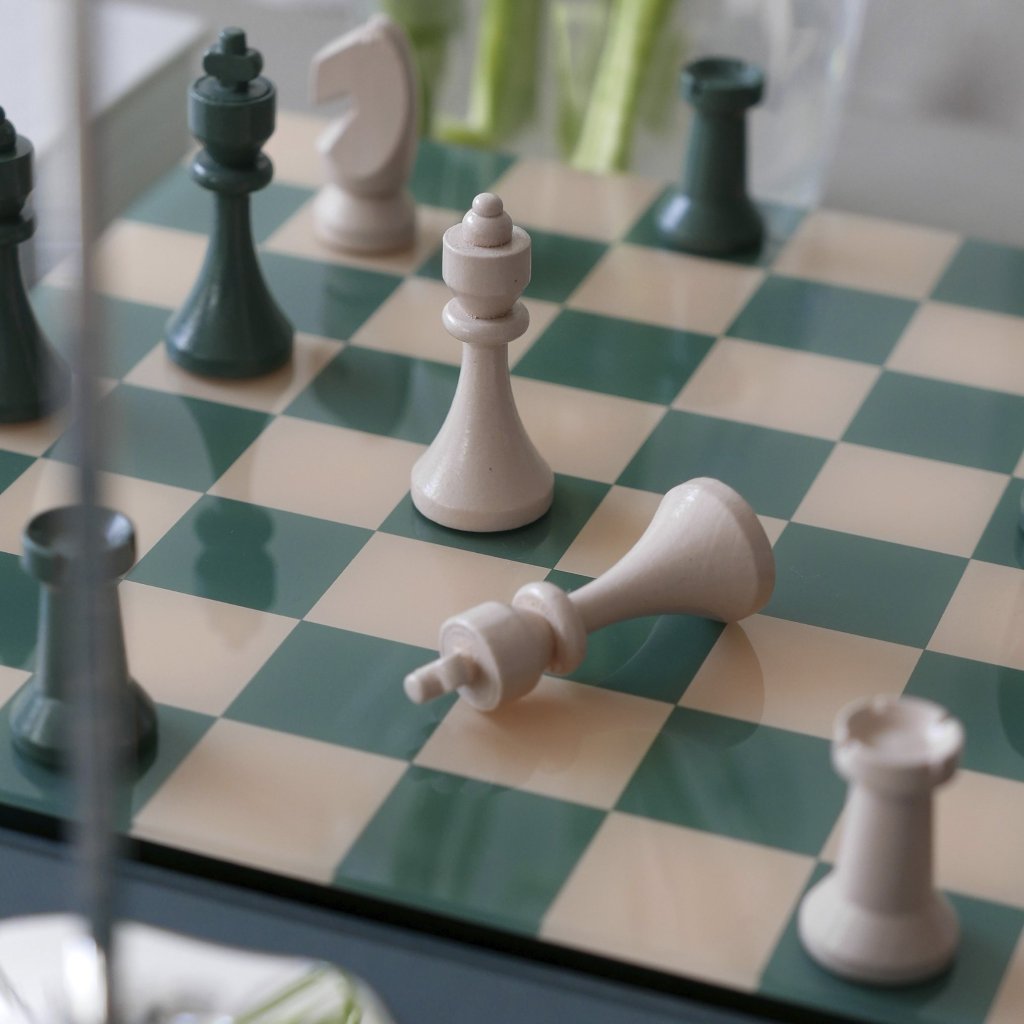 - σκακιέρα με ξύλινα κομμάτια και σανίδα από MDF με ακρυλική επιφάνεια