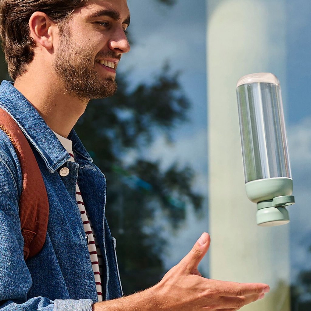 - Το πρακτικό λουράκι σάς επιτρέπει να μεταφέρετε άνετα το μπουκάλι στο χέρι σας ή να το κρεμάσετε σε μια τσάντα πλάτης ή σε μια τσάντα