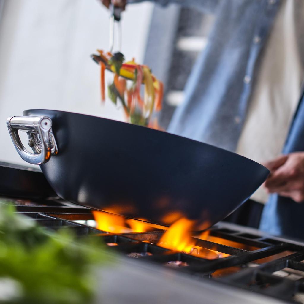 - Το Τηγάνι wok είναι κατάλληλο για όλους τους τύπους εστιών, συμπεριλαμβανομένων επαγωγικών, αερίου, γυάλινων κεραμικών και κλασικών ηλεκτρικών εστιών.