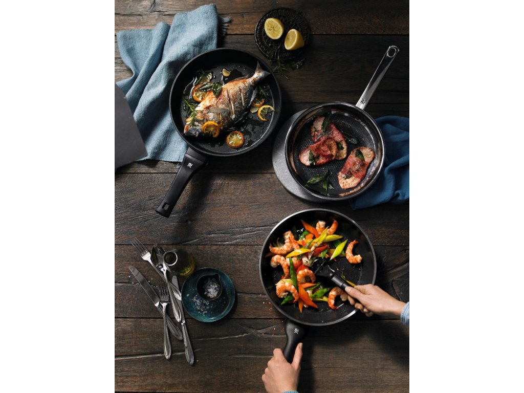 Τα τηγάνια PermaDur Excellent είναι κατασκευασμένα από κράμα αλουμινίου και χαρακτηρίζονται από υψηλή σταθερότητα και βέλτιστη θερμική αγωγιμότητα. Το αντικολλητικό φινίρισμα είναι ανθεκτικό και ανθεκτικό στις γρατζουνιές. Τα τηγάνια PermaDur Line είναι ιδανικά για την προετοιμασία ευαίσθητων φαγητών, όπως τα ψάρια ή τα πιάτα με αυγά. Τα τηγάνια είναι επίσης κατάλληλα για επαγωγή. Διαθέτουν εργονομικά διαμορφωμένη λαβή από ειδικό πλαστικό ανθεκτικό στη φλόγα με προστασία από τις φλόγες. Τα τηγάνια δεν μπορούν να πλυθούν στο πλυντήριο πιάτων.