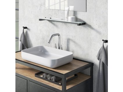 Ράφι μπάνιου CARVO 66 cm, μαύρο, ανοξείδωτο ατσάλι/γυαλί, Zack